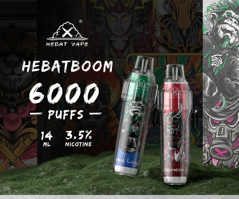 Hebat Boom 6000 เป็นบุหรี่ไฟฟ้าแบบใช้แล้วทิ้งและแบบชาร์จใหม่ได้ ผลิตภัณฑ์ที่คุ้มค่ามากถึง 10 รสชาติ: Tieguanyin, โคล่าเย็น, น้ำแข็งองุ่น, ลิ้นจี่, บลูเบอร์รี่, เสาวรส, มิ้นต์, สตรอเบอร์รี่, น้ำแข็งเขียวชอุ่ม, เครื่องดื่มให้พลังงาน